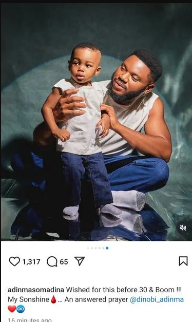 Somadina Adinma recently posted charming images of his one-year-old son, Adimchinobi Adinma, on Instagram.