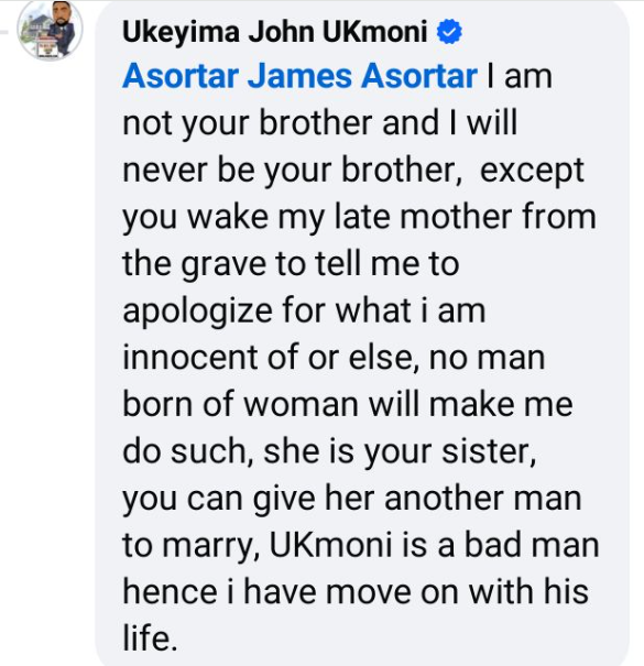 Asortar James Asortar, a Special Assistant to the Benue State Governor on Social media, has reacted after popular realtor, Ukeyima John UKmoni, accused him of playing a major role in the collapse of his marriage.