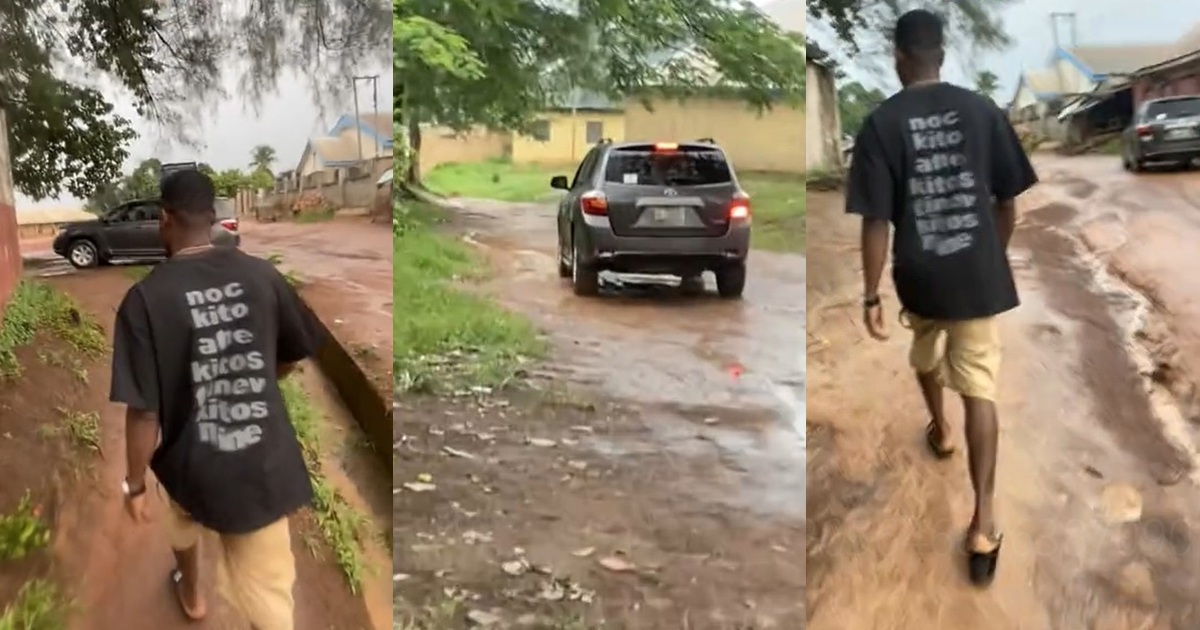 “If you get money, buy car o” – Man jokes after his dad drove past him in the rain without picking him up (WATCH)