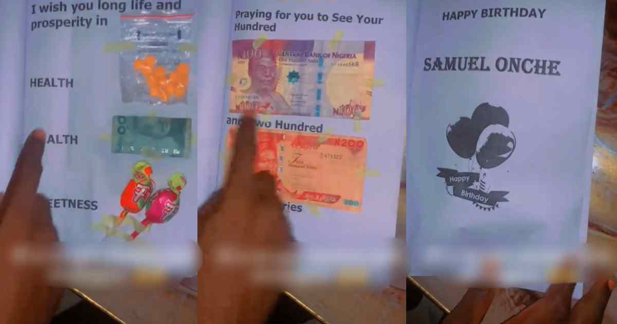 A man was left surprised after receiving a uniquely crafted birthday gift from his sister, an unconventional booklet designed with cash and thoughtful messages. In an online video, the man @emmylegend4 recorded the handmade birthday card, featuring neatly arranged pages where Naira notes, sweets, and health supplements were attached to symbolic birthday wishes. Each page […]