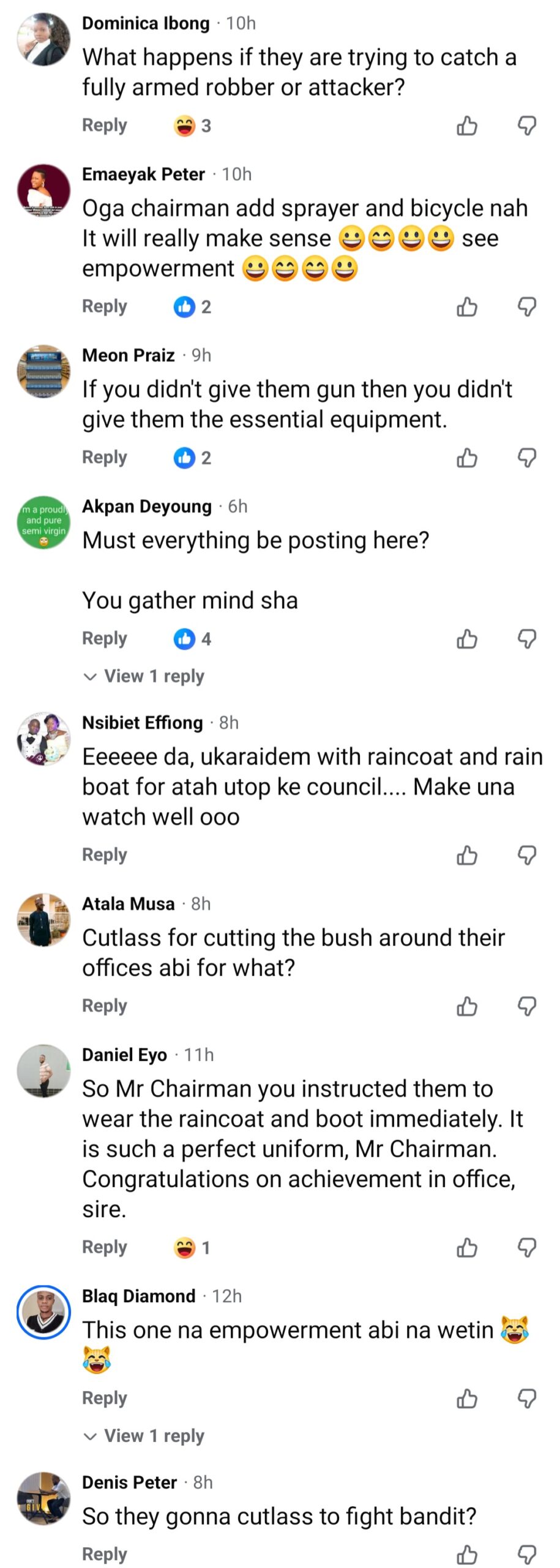 Ntiedo Effiong Usoro, the Chairman of Essien Udim Local Government Area, Akwa Ibom State, has received heat after he proudly showed off the equipment he provided for a security unit in his local council to fight insecurity.