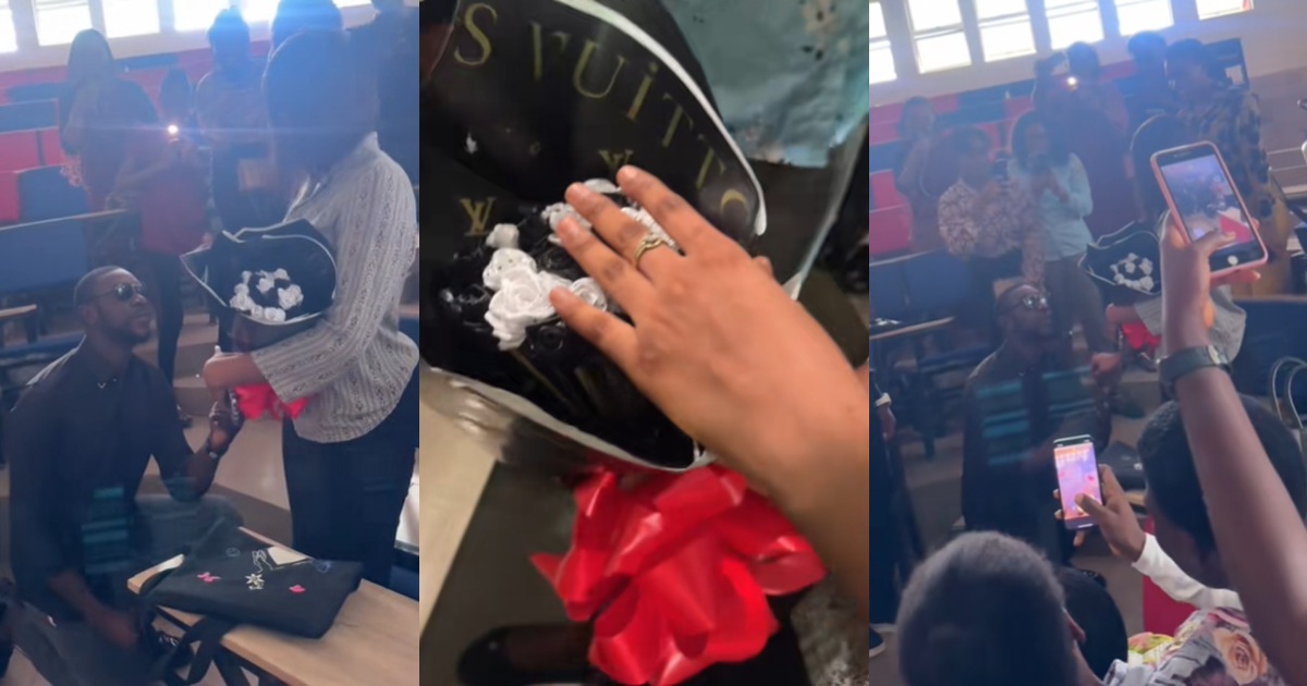Moment a Nigerian student proposed to his girlfriend, who is also his coursemate, in class (Watch)