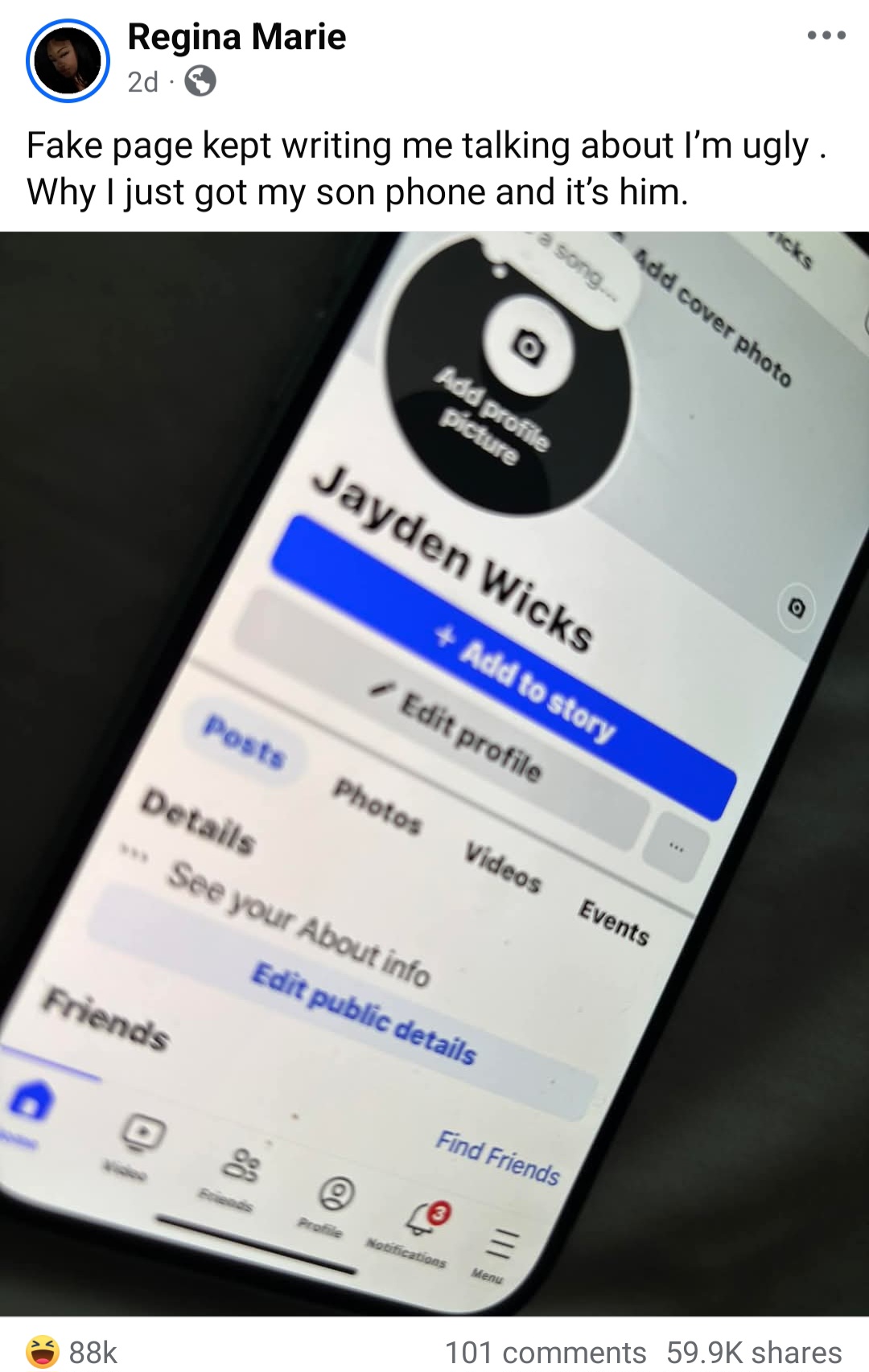The mum said she recently got hold of her young son’s phone and discovered he was the owner of the fake account.