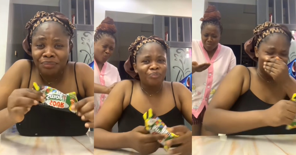 “Next time she will not beg again” – Hilarious moment a lady teaches her sister a lesson with sour candy (WATCH)