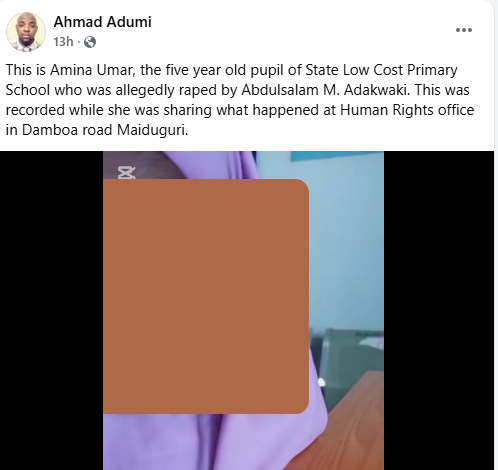 The kid was raped by the suspect on November 13 while traveling to school, according to the PPRO. The statement stated, “The Borno State Police Command wishes to clarify issues arising from a social media post concerning an alleged case of sexual assault involving a 5-year-old minor at State Low-Cost area of Maiduguri.”