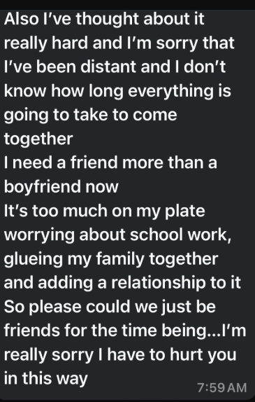 He posted screenshots of the breakup message he received from his girlfriend, in which she expressed her desire to terminate their relationship.